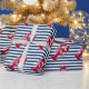 Nautical Red Lobster | Blue and White Stripe | B Wrapping Paper