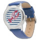 Nautical Red Lobster Monogram Blue White Stripe Watch