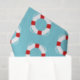 Fun nautical tissue paper perfect for gifts or crafts featuring a cute red and white life preservers pattern over ocean blue.