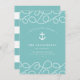 Our coastal chic moving announcements in turquoise and white feature white nautical rope detailing with a ship's anchor illustration. "We've dropped anchor!" appears above your new address details in nautical style lettering.