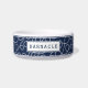 Pamper your seafaring pooch with our personalised dog bowl, featuring a pattern of looping nautical rope in white on navy, with your pet's name on the front. A thin navy border at the top and bottom adds to the preppy charm of this summery doggie dish.