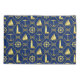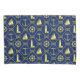 These nautical pillowcases match the navy blue and gold nautical duvet cover. Gold nautical elements framed by diamond shaped gold rope with nautical knots, with a navy blue background.