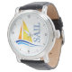 A vibrant nautical design featuring a modern graphic sailboat with bright sails and text. This item makes a nice gift for boat owners, cruise enthusiasts, or anyone who enjoys being out on the water.