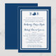 Nautical navy blue wedding invitation with, classic monogram and modern blue border and stripes. Personalise with your own text and colours.