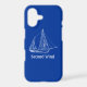 Personalized iPhone case featuring an image of a sailboat with the boats name which can be customized to a different boat name or the name of a person who loves boating, builds boats or loves sailing.