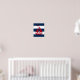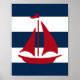 This is a terrific nautical print to go with your decor. It features a sailboat on a navy blue and white striped background.