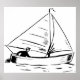Nautical Sailboat Sketch White Ink Ocean Poster