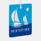 Nautical sailing boat custom square metal Christmas ornament for sailors. Upload your own picture on the back to create your a unique x-mas tree ornament. Create one for skipper, boat captain, dad, husband, friend, boyfriend, coach, first mate, boss, coworker, employee, brother, uncle, grandpa etc. Create your own Holiday decorations. Blue or custom colours with personalised text. Double sided with string. Sunset sail ship silhouette.