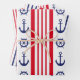 Nautical Sailing Red White Blue Stripes Anchor Wrapping Paper Sheet