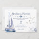 The navy blue design features an elegant watercolor sailing yacht, seagulls and a compass rose for your nautical wedding. You can easily personalise your details by simply pressing the "customise it" button for your perfect wedding.