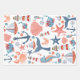 Nautical Sea Stripes Anchor Seashells Starfish Wrapping Paper Sheet