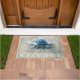 Welcome your family and friends with one of our personalised doormats. This nautical inspired design has a photographed blue seashell in the centre on a background of sand. Above is a postage stamp area to put your town, date and state. Below the shell is your family name in a modern script typography for you to personalise ad the word "Welcome". Designed by world renowned artist ©Tim Coffey.
