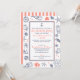This classically styled invitation is perfect for summer beach parties, receptions, barbecues or boils. The front features charming line drawings of different beach themed objects: seashells, lobsters, crabs, a lighthouse and a compass, among others. The navy blue illustrations are highlighted with accents of coral against a crisp white background. Customise the centre section with your own event information using the easy provided templates. The back side of the invitation has a pattern of modern vertical stripes in coral and white. Classic, elegant and on trend.