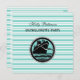 This stylishly elegant art deco nautical design features a black cruise ship with robin egg blue sky and ocean in a black and white frame on a light robin's egg blue and white striped background.