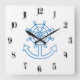 Nautical ship wheel and anchor square wall clock