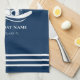Nautical Ship Wheel Boat Name Navy Blue Tea Towel