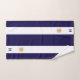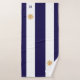 Elegant nautical golden ship wheel and monogram on navy blue and white striped Towel Set. Monogram and Ship wheel can be customised.