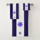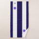 Elegant nautical ship wheel and monogram on navy blue and white striped Towel Set.