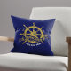 Indulge in coastal elegance with this luxurious navy blue and gold throw pillow. Featuring a beautifully detailed ship's wheel design in crisp white, it adds a touch of nautical sophistication to any room.