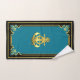 Nautical ship's wheel/anchor aqua-blue/gold bath bath towel set