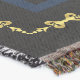 A quality printed throw has its advantages. This is a much finer weave throw than its loopier cousins, and though lighter, it is worth the investment for custom room accessorizing. The back is much prettier than the typical brown, and the fringe on the long sides very vivid, the selvage nicely done. Before photographing, I washed the throw in cold water, delicate, with a thicker woven throw the same size. On tumble dry low, this throw was dry in half the time as the other. This is a very practical quality if you use throws for furniture covers or to wrap up in frequently. The sleekness of the fabric makes it a great layer for accenting or protecting without the feeling of sitting on too much stuff. Perfect for napping or when you feel a light chill coming on. The color printing is beautiful and on this fabric, matched the design and color of my Photoshop image. This is an advantage for blending room fabrics and colors. The fringe on the short sides prints the colors from the design image and therefore varies from the side fringe. I streaked a white fractal line through the plaid pattern to give the illusion of weaving. This printed as crisp as an illusory thread, and put some white in the short side fringe, showing another advantage of print vs loomed- for artistic purposes, line lines, detail, and color integrity can be planned and preserved. My loomed throws have color limitations and more of a needlepoint texture. Print throws reproduce an exact image. The throw felt a little stiff straight out of the package, but this went away in the first delicate wash. Of course I searched the wash water for ink or bleeding and there was none.