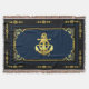 Nautical ship's wheel/anchor navy-blue/gold throw blanket