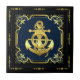 Nautical ship's wheel/anchor navy-blue/gold tile