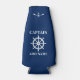 Vintage Ships Wheel Helm, Nautical Anchor and Oars with Your Captain Name or Boat Name Navy Blue Bottle Cooler.