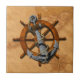Classic vintage ship's helm and anchor over a vintage style nautical map of the Florida Keys.