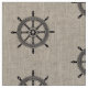 Perfect for crafting beach house pillows or summer sailing pants, this soft linen fabric is adorned with vintage ships wheels. Get nautical with style.