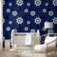 Nautical Ship's Wheels and Circles Blue and White Wallpaper