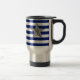 A silver chrome like star design on a navy blue stripes decor. A modern nautical gift.