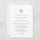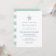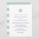 Our summer starfish wedding invitations feature classic nautical styling with a clean, minimalist look and a lighthearted touch. Design features a small navy blue vintage style starfish illustration at the top with your wedding details in elegant navy blue block and script lettering. Invitations reverse to wide horizontal stripes in contrasting pale mint seafoam green and white. Perfect for yacht club, boat, beachside or summer weddings.