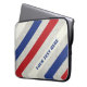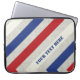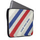 This bold nautical striped patterned laptop sleeve is ready for your personal text. Created in red, white, navy and grey with a stencil style font to compliment the look.. Choose your size in the dropdown menu.