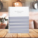 A minimalist nautical stripe journal in navy blue on a crisp white background. The text can easily be customised for a design as unique as you are.