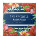 This personalised ceramic tile features a nautical navy blue and white stripe design with tropical flowers. Personalise it with a name and year.