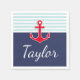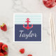 Nautical Striped Pattern Red Anchor Custom Text Napkin