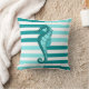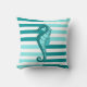Nautical stripes and seahorse - warm Aqua Marine Cushion
