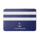 Nautical Stripes Custom Boat Name white anchor navy blue Bath Mat.