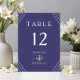 Nautical Stripes Gold Anchor Navy Blue Wedding Table Number Card