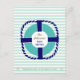 A turquoise and navy life preserver is the centerpiece of our coastal themed new address announcement postcard. White and aqua stripes, not to mention the golden starfish, add to the beachy, nautical feel, suggesting a move towards the beaches of Florida. You can easily revise all text on front and back of the card using the Personalisation template. This design is also available on two sizes of flat cards with envelopes and a coordinating return address label.