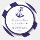 Nautical Stripes & Navy Blue Anchor Wedding Classic Round Sticker