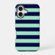 Nautical Stripes Navy Blue and Mint Green iPhone 16 Case