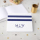 Nautical Stripes monogram, initials or Boat Name navy blue and white anchor Guest Book (great for weddings)