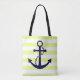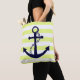 Nautical Sun Yellow Striped Navy Blue Anchor Beach Tote Bag