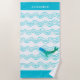 Nautical Teal Blue Whales and Waves Beach Towel