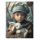 Blue aesthetic spiral notebook, featuring a cute little boy holding his toy bunny in a nautical theme illustration and custom text.
