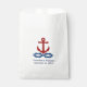 Nautical wedding theme white paper favour bag, with graphics of a red anchor and blue knotted rope. Personalise the blue text for your wedding event. Great for candy bars, popcorn, and other favours.