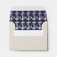 Nautical themed wedding RSVP response card envelope done in a vintage ivory, with custom blue text, on the front. The inside of the envelope is done in blue with vintage graphics of ivory coloured ship's anchors. Lovely finishing touch to our blue and ivory Nautical themed wedding RSVP cards.
