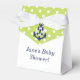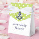 These green polka dot and blue nautical themed favour boxes will be a great touch for your next boy baby shower!